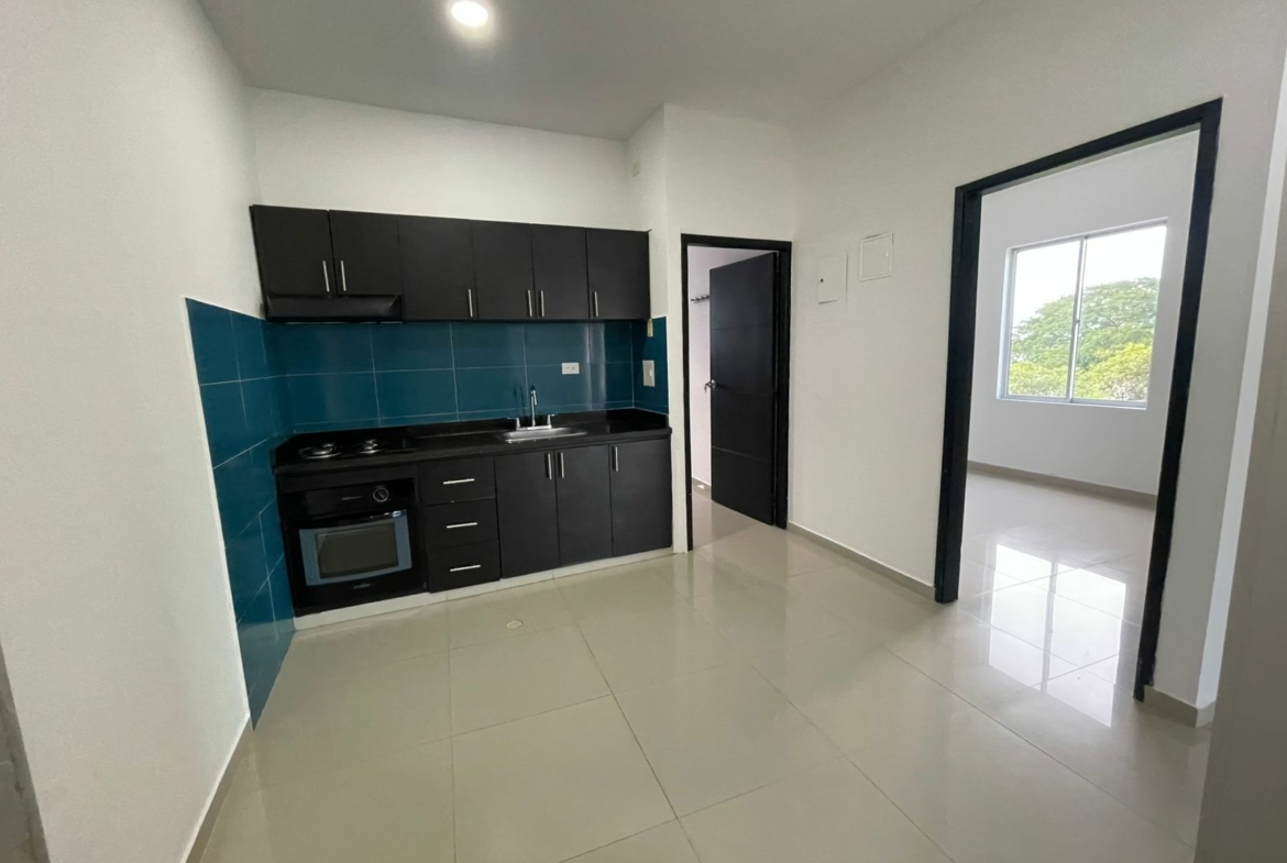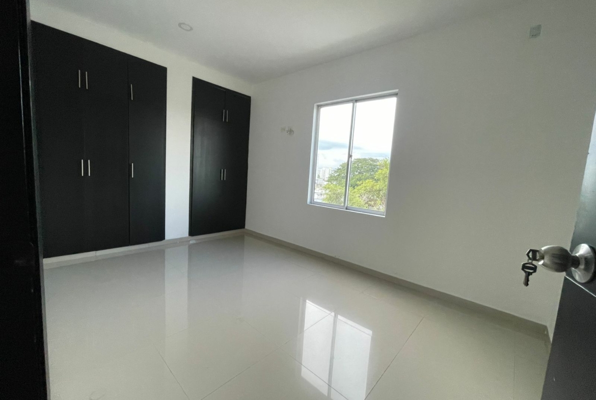 Hermoso apartamento disponible para arriendo en conjunto cerrado con áreas comunes como piscina, parque infantil, salón social, etc., el inmueble consta de 2 habitaciones cada una con baño interno, sala comedor, zona de labores, cocina semintegral, balcón, parqueadero y alcoba del servicio con su baño interno.